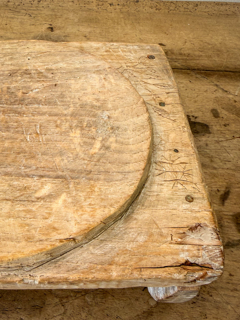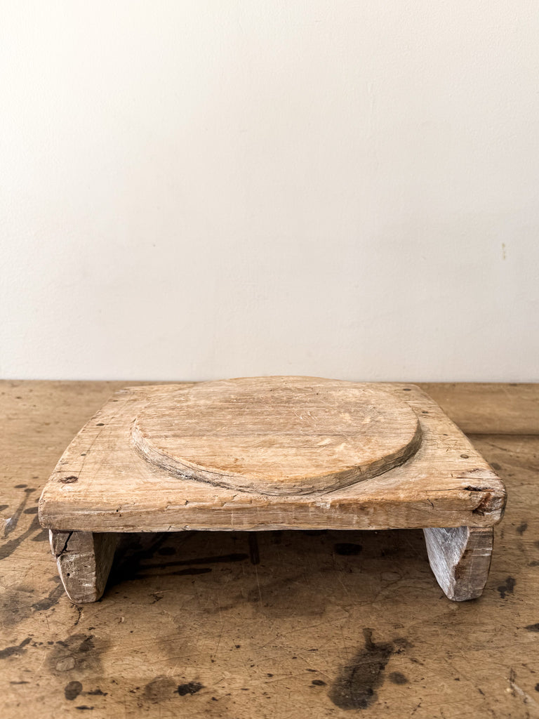 Vintage footed bread board that adds height to your vanity or island.  Display your favorite bath products, candle  on it or use to display accessories on.