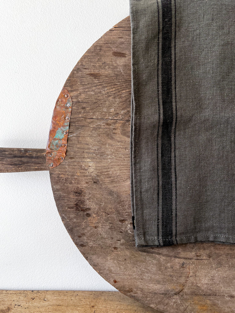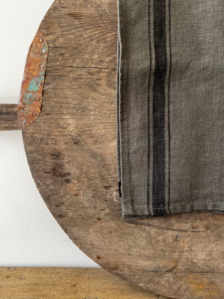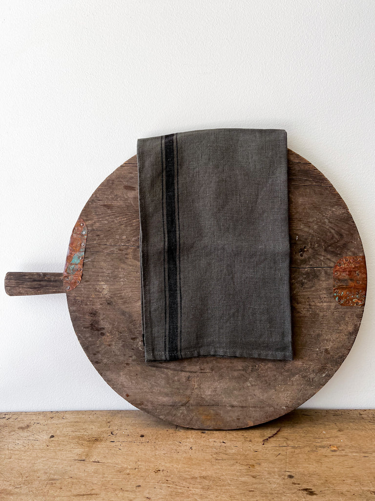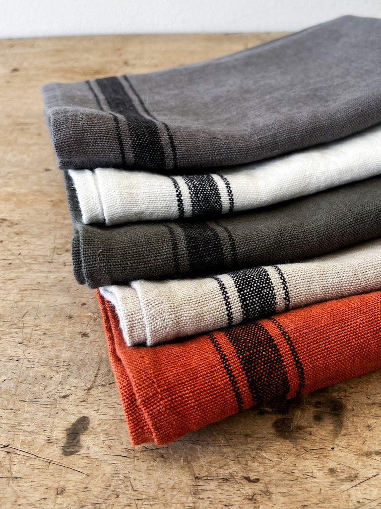 Crafted from 100% linen this hand towel is both luxurious and durable.  A deep olive background combined with a bold stripe makes this idea for both the kitchen and the bathroom.