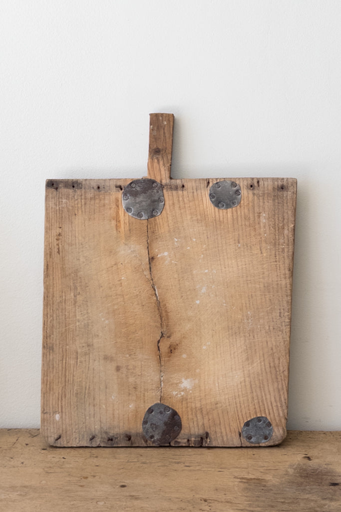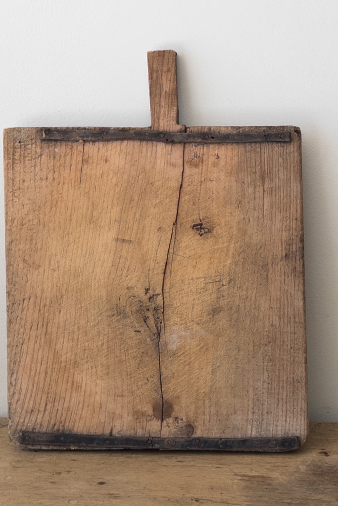 Collected from villages in Europe, these boards were once a staple in breadmaking. Each one is handpicked for its beautiful patina and unique character and will make any space warm and inviting. Place against your backsplash or on your counter with a pot and candle and watch your kitchen instantly become a nit more cozy. Due to the vintage nature we recommend these as a decorative piece.