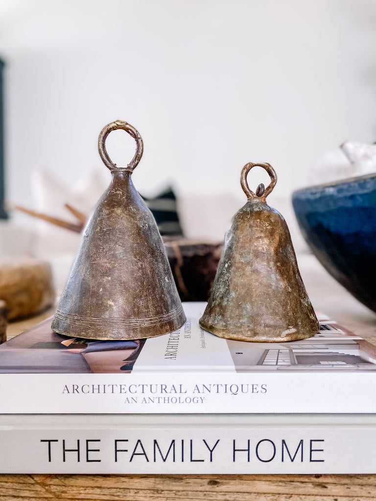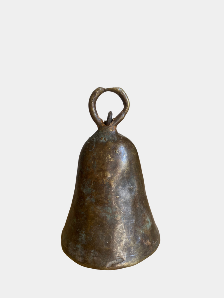 Hand forged brass goat bell aged with a natural patina from years of use by the Sudanese people.  Each bell is unique in patina and size ,making it a beautiful stand alone piece or couple a few together to make a statement.