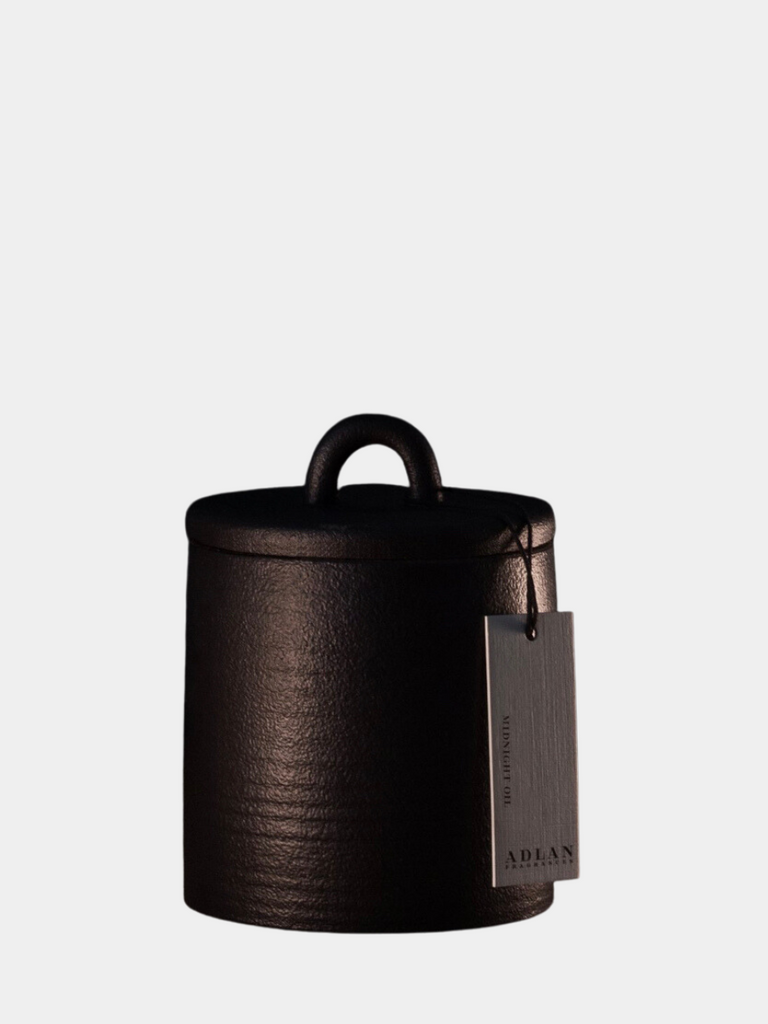 Our signature graphite stoneware vessel, filled with 10.5 ounces of coconut wax.