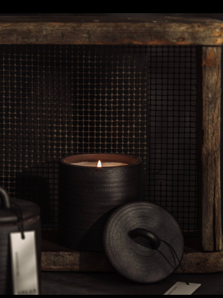 Our signature graphite stoneware vessel, filled with 10.5 ounces of coconut wax.