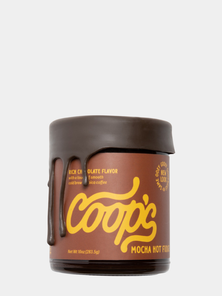 Hot fudge is a sauce so iconic, we knew we had to spend the time to get it right. So, we’ve been mastering the craft since 2010—and this one’s for our coffee addicts. Handmade in small batches with high-grade European chocolate, Arabica cold brew coffee and pure dairy, Coop’s Cold Brew Mocha Sauce is a jar of ooey-gooey nostalgia. Deep and dark with a balanced hint of java, this indulgent sauce has just the right touch of sweetness—unlike other sugary versions that leave an artificial taste on your tongue. It’s instantly rich and impeccably smooth, thick right out of the jar but drizzly once warmed. Atop ice cream it hardens to the perfect soft chew, but we don’t stop there—spread it on brownies, drip it over fruit, plunge your pretzels into it or devour it straight by the spoonful. Just don’t be surprised if it disappears quickly. All Natural, Gluten-free. Non-GMO. 10 oz jars.