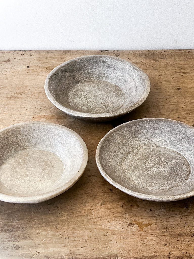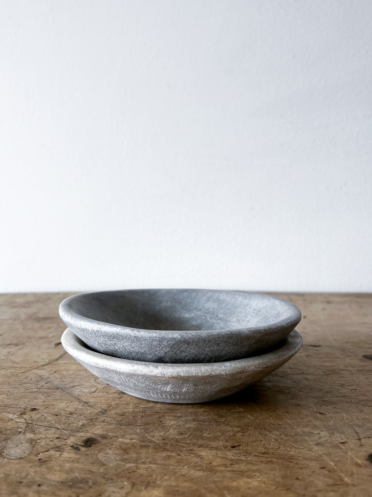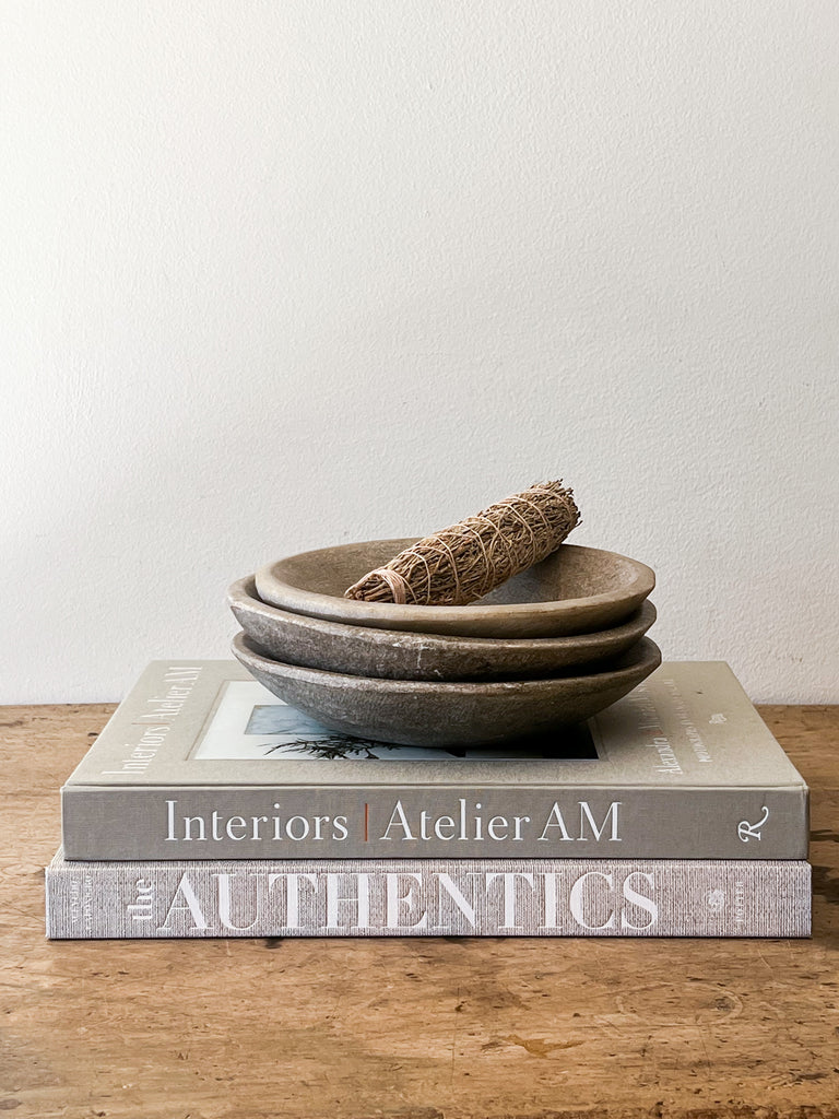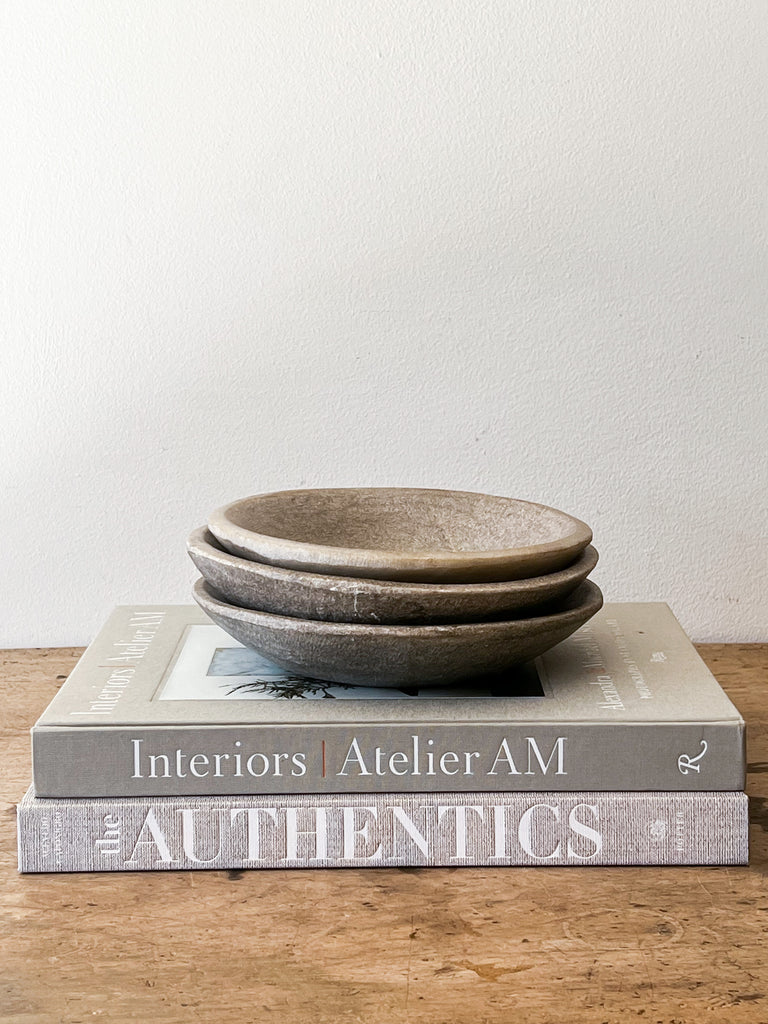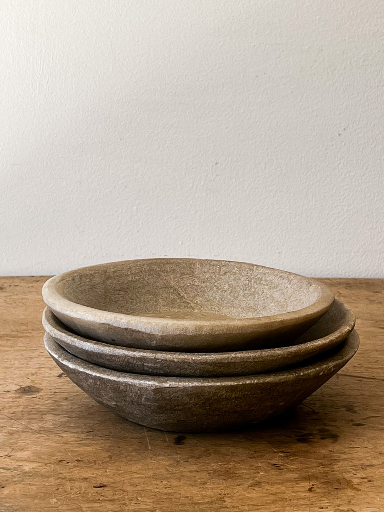Hand-carved, honed stone bowls from India. Each bowl is an organic one-of-a-kind. Its round shape and size is perfect as a catchall bowl or for holding your favorite candle. Each have natural stone imperfections and color variations, adding to their charm.