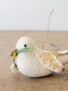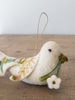 This handcrafted dove ornament embodies tranquility with its soft wool construction and delicate embroidery of green, blue, soft pink and gold thread.