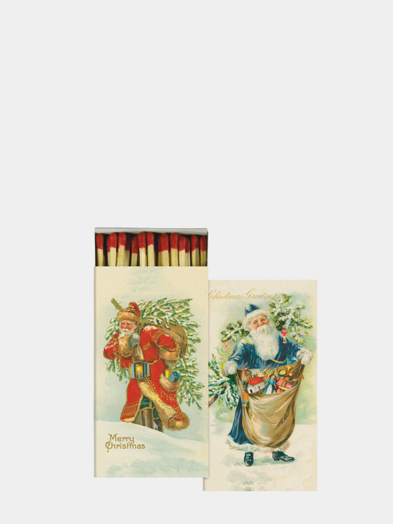 Santa Matches are great as a hostess gift, a perfect pairing to a candle and always a sweet way to bring the holidays to your home. Safety matches, 50 sticks per box