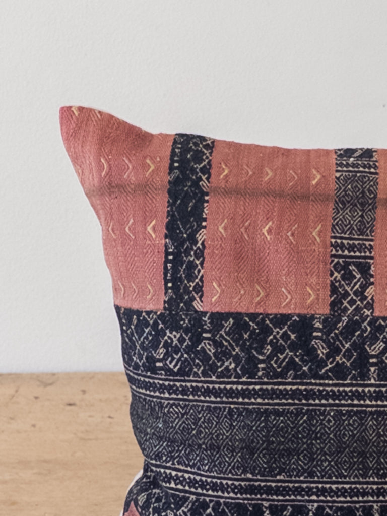 Vintage Thai Silk  lumbar in black detailed pattern.Backed with 100% linen and finished with a hidden zipper and filled with oversized down insert.