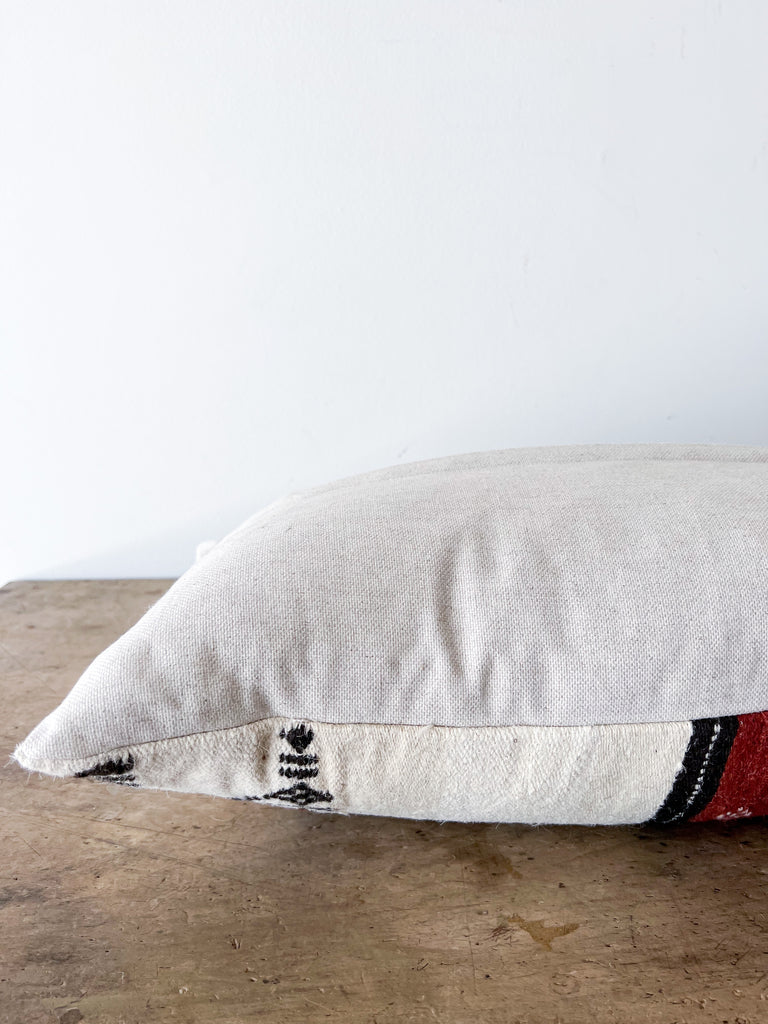 Perfectly hand crafted of vintage fabric and artistically embroidered.  This pillow is a statement all in its own.  Hand woven front and linen back.