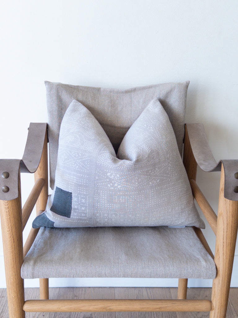 This stunning vintage pillow is a one of a kind piece that adds warmth and texture to your space.  Place on a bed, accent chair or sofa …either alone or mixed with one of our other pillows.  Beige linen background and slim zipper closure.
