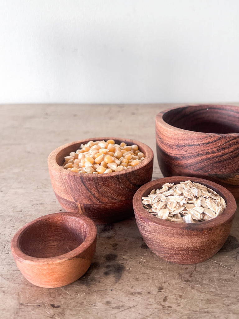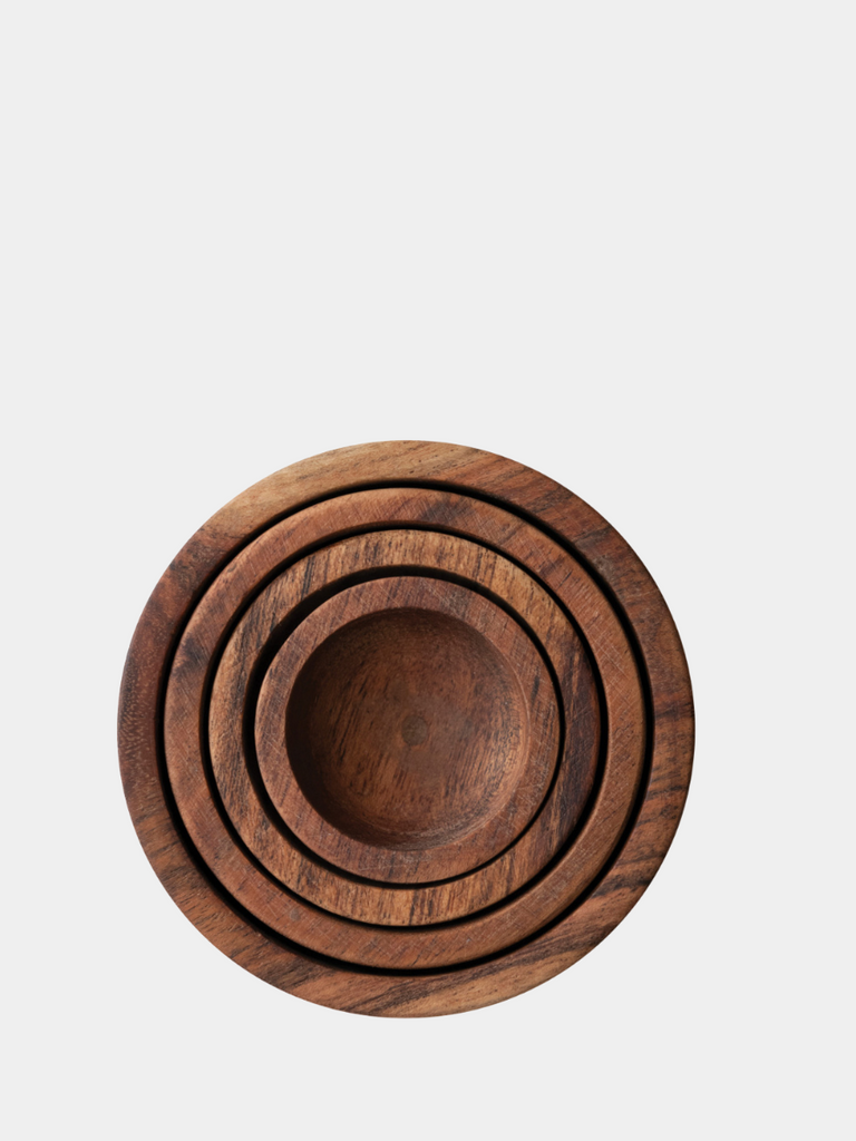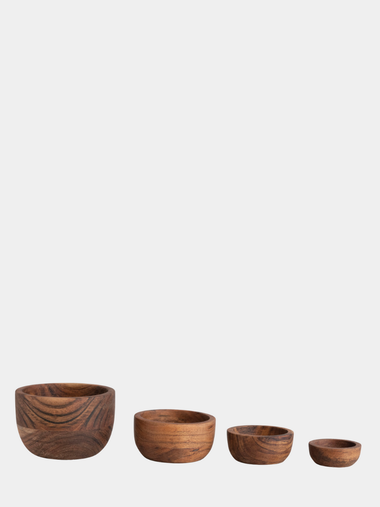 4" Round, 3-1/2" Round, 2-1/2" Round & 2" Round Acacia Wood Nesting Bowls, Natural, Set of 4