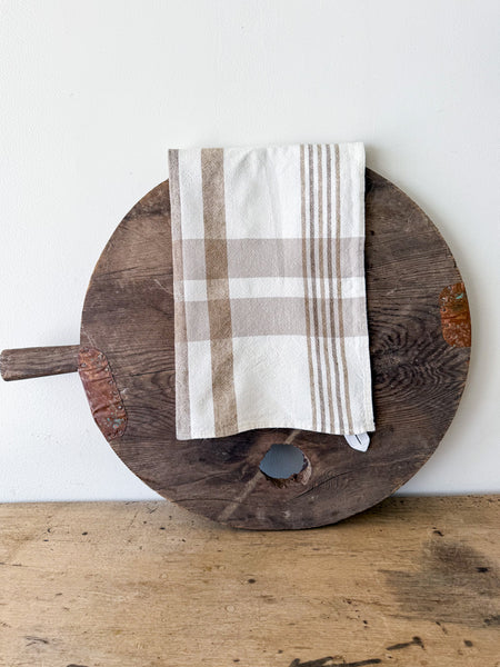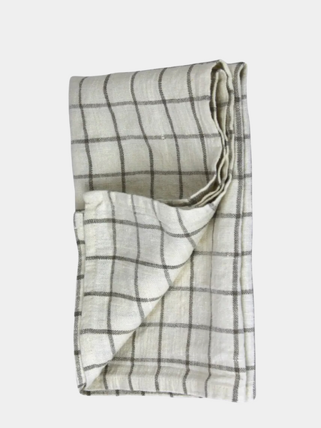 Linen Grid Tea Towel - Cream