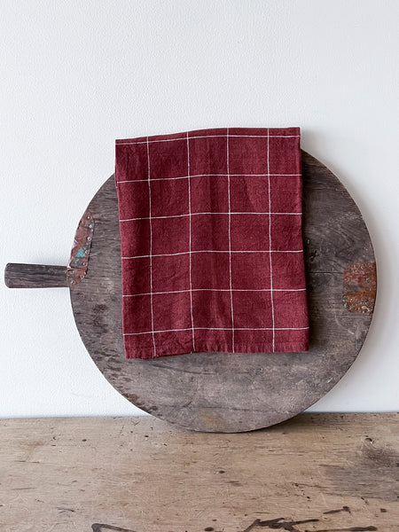 Wine Grid Linen Tea Towel