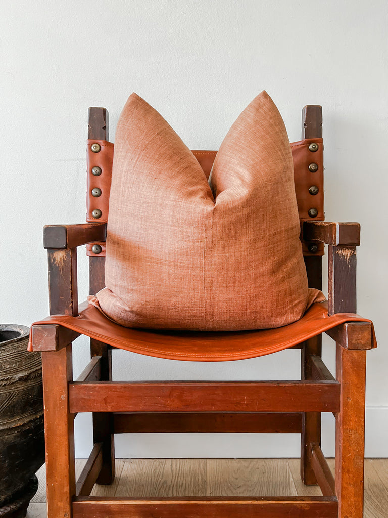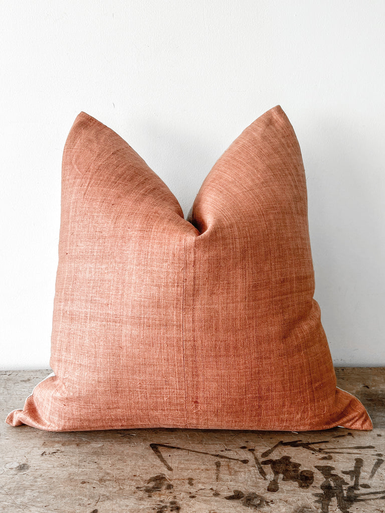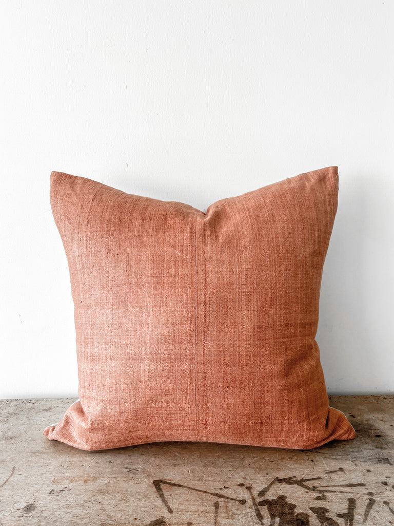 This stunning vintage pillow is a one of a kind piece that adds warmth and texture to your space.  Place on a bed, accent chair or sofa …either alone or mixed with one of our other pillows.  Beige linen background and slim zipper closure.
