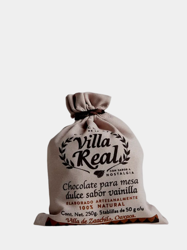 Villa Real chocolate from Oaxaca is made with simple ingredients of cocoa butter, sugar, almond, and other nuts and spices, resulting in the most delicious cup of Mexican Hot Chocolate you’ve ever tasted. Mix with warm milk and froth together with our handcrafted traditional molinillo. (Jug and Molinillo not included). Small size is 250g, including 5 discs of Chocolate. Large size is 500g, including 10 discs of Chocolate Ingredients: Cocoa butter, sugar, almond, nuts and spices Allergen statement: Includes nuts Made in Mexico
