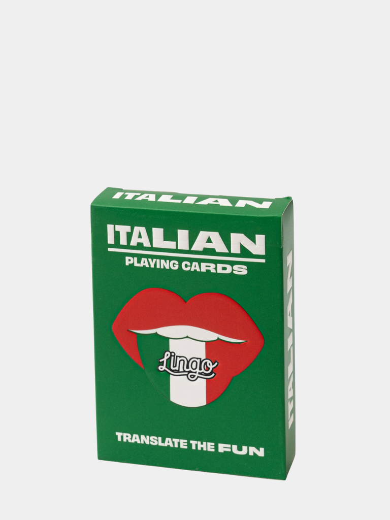 Often recognized as the most beautiful language in the world, you can say “I have a strange rash” in Italian and you still sound like a smooth operator. Just think how awesome it would be to say hello, find out where the closest restaurant is and order a beer! With Lingo Playing Cards, you can have hours of fun with your friends and family while on the go. These cards are portable and come in a compact case, making them an ideal travel game that you can take anywhere. Whether you're on a long road trip, a plane ride, or waiting for your train, Lingo Playing Cards is a great way to pass the time. But that's not all – these cards are also an ideal educational tool for STEM enthusiasts, a great alternative to board games and card games. This deck includes 54 Italian translations essential for travellers who want to immerse themselves in the culture they're exploring. Pick up Italian while playing cards!