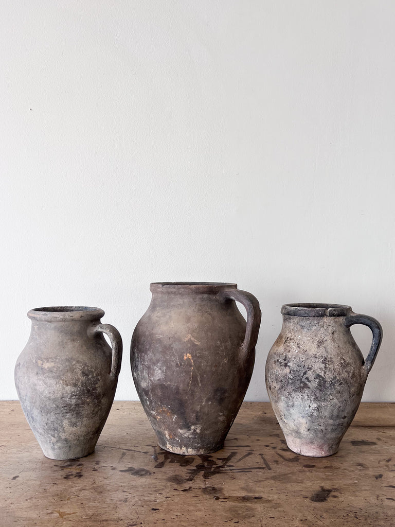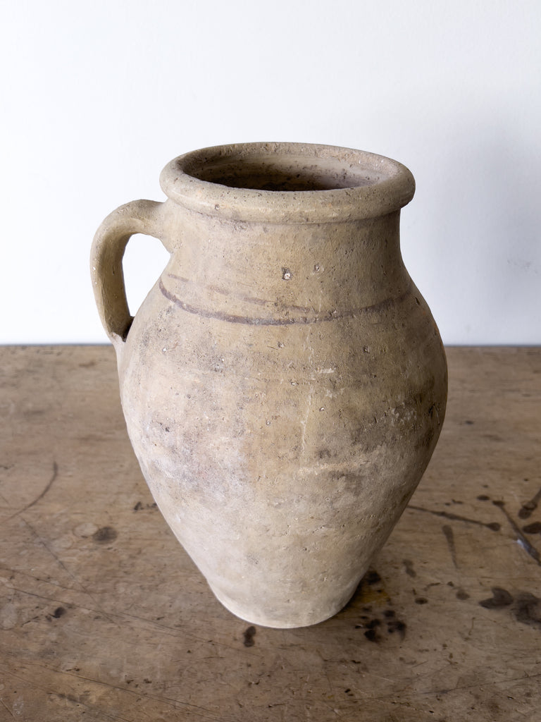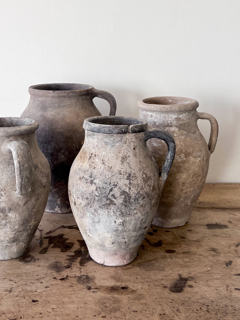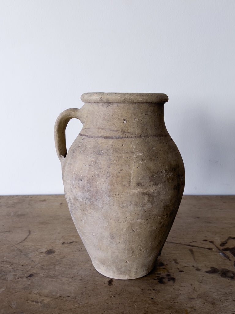 This beautiful olive jug with add an abundance of warmth and texture to your space. Jailing from  from the 40’s these vintage Turkish terracotta vessels are filled with the richness of neutral coloring and patina due to time.  We love them as a stand alone piece but even more when displayed together.  Sometimes more is better.  Each one will vary in patina and design (some have lines some do not)