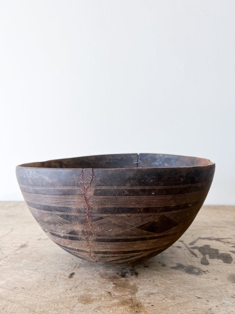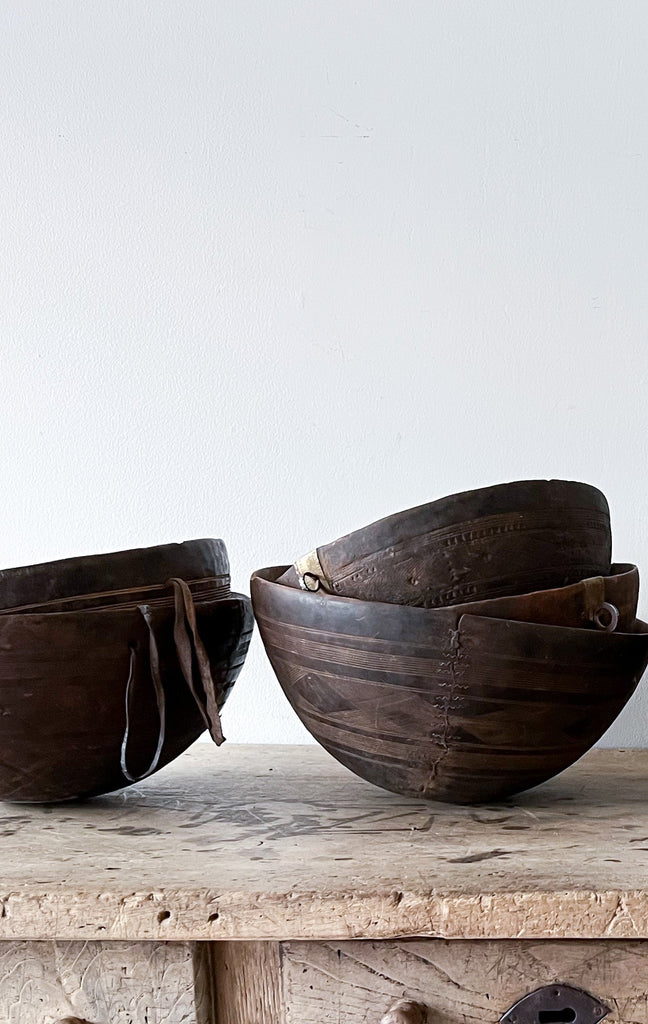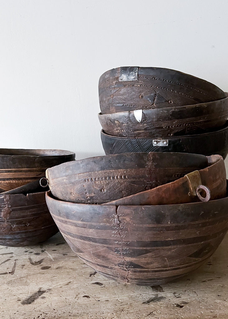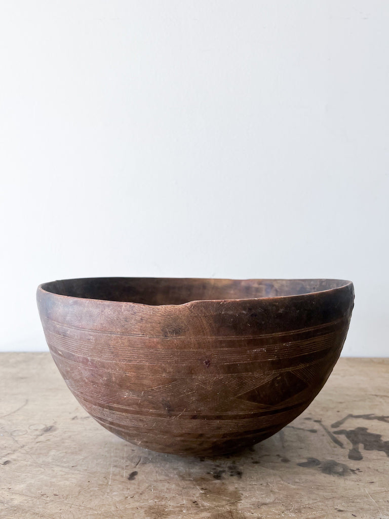 Vintage milking bowl from Africa.  Each wooden bowl is one of a kind and shows signs of age and history that only add to its unique beauty.