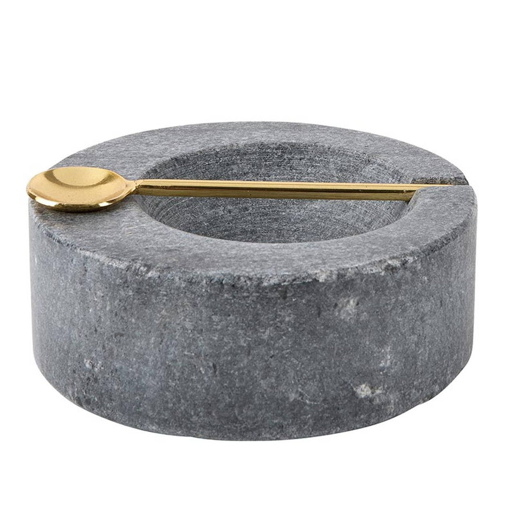Elevate your space with the Gray Marble Pinch Pot, complete with a stunning gold metal spoon. This elegant and versatile piece seamlessly blends classic and contemporary design, making it a stylish addition to any room. •Versatile Functionality: Perfect for a variety of uses, this pinch pot can be used in the kitchen to hold spices or herbs, in the bathroom for bath salts, or as a chic catchall for small items like jewelry or trinkets •Quality Materials: Made from durable marble, the pinch pot offers a timeless, durable finish that is easy to clean. The gold metal spoon is crafted for both beauty and practicality, providing a touch of glamour to your daily routinesd practicality, providing a touch of glamour to your daily routines.