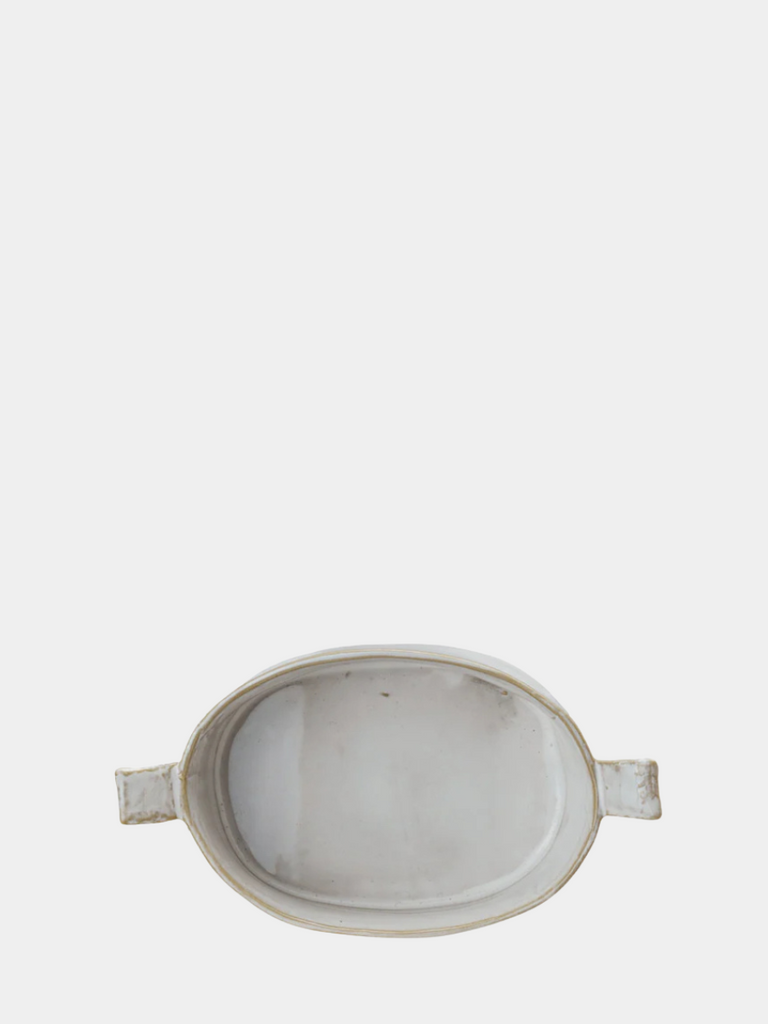 This stoneware baker is a quintessential kitchen ally, marrying functionality with a clean, sophisticated design. Its oval shape is accentuated by convenient handles, making it easy to transport from oven to table. The white color ensures it will complement any dining setting, while its compatibility with various home aesthetics makes it a versatile choice for any cook. Whether serving a family meal or entertaining guests, this stoneware baker is a testament to the beauty of simple, yet elegant cookware.
