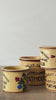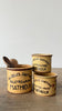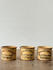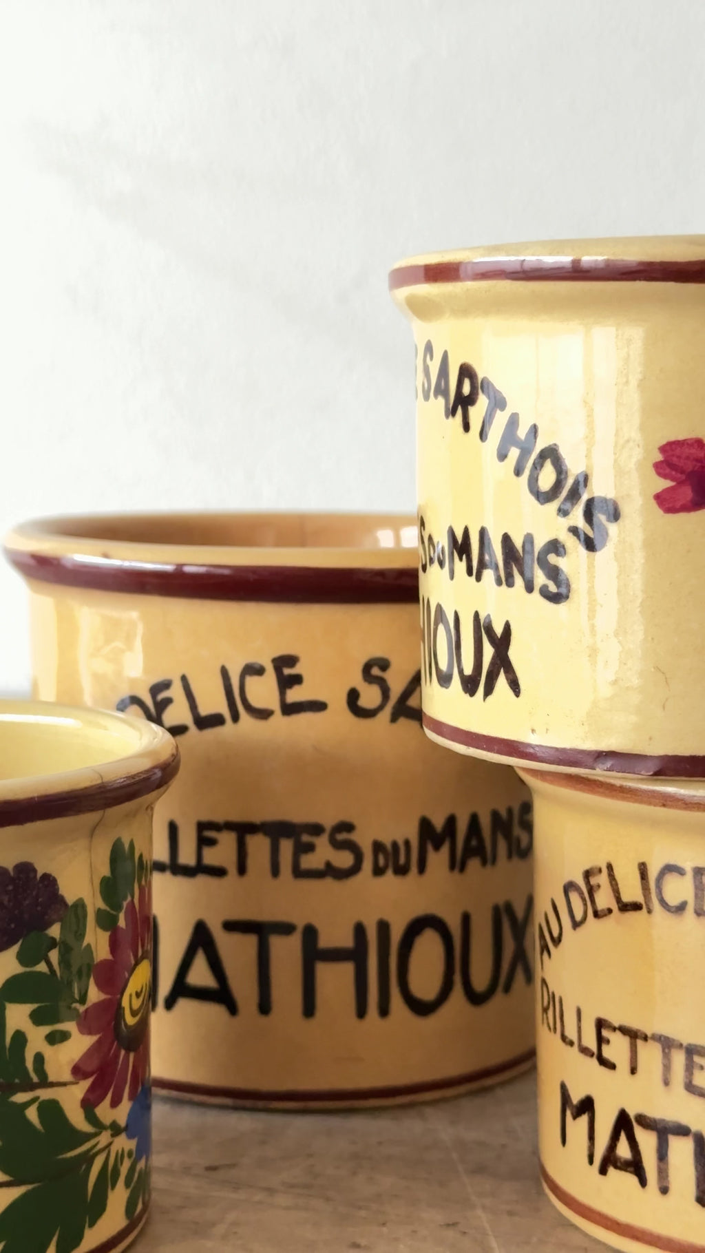 These little jars were once used to hold rillettes in France. Au device sarthos is of the delight of Sarthos. Each one has a slightly different design but all are adorable and bring a sense of history to your space.