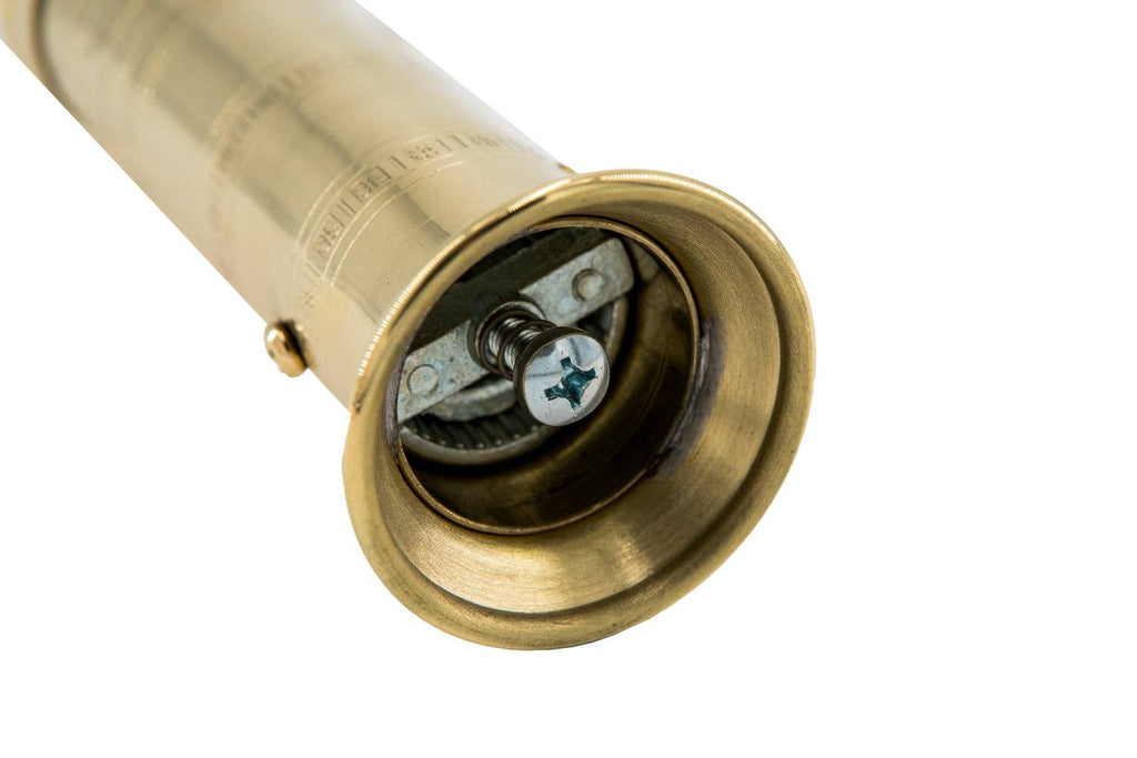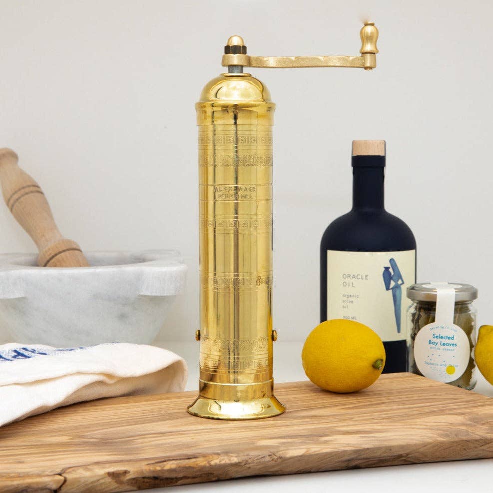 The Original Greek Mill is a unique piece of European tradition that is functionally the best in the world and handmade to exacting standards. While other mills simply crush the peppercorns, this unique grinding mechanism grabs each peppercorn and breaks it in half, then cuts each pieces into even smaller pieces, maximizing flavor and aroma. Based on a coffee mill that was used by Greek soldiers in the early 20th century, the design includes a flanged base for stability and a durable all-metal body. The tool steel grinding mechanism adjusts from fine to coarse. Available in copper and brass. Manufactured by a small, family-run company in northern Greece.